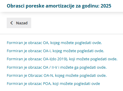 Pripreme se podaci za poresku amortizaciju. Formiraju se OA, OA-I, OA/II-V I OA-N, POA obrasci.