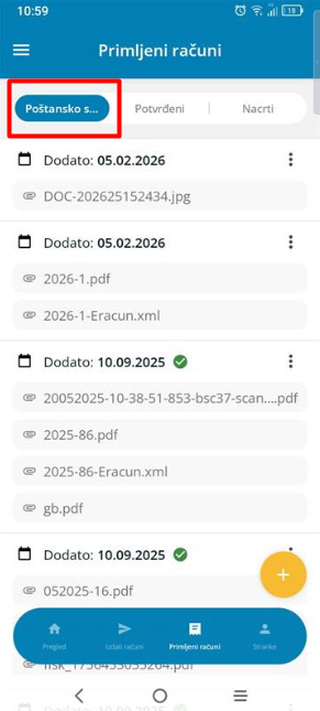 Potrebno je da se ulogujemo u mobilnu aplikaciju, u našu organizaciju i na početnoj strani da kliknemo na opciju za primljene račune: