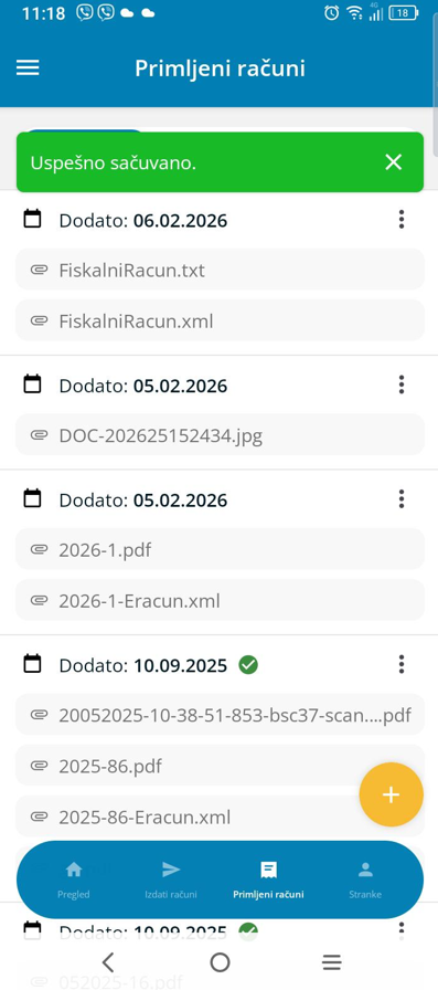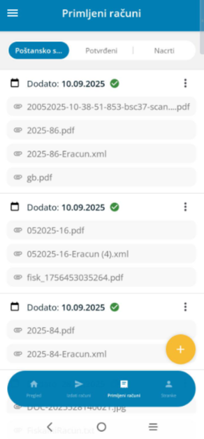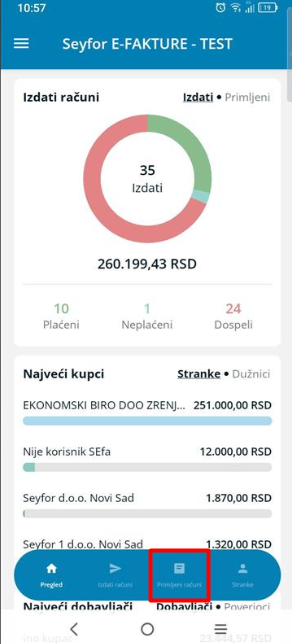 - Kada se ulogujemo u mobilnu aplikaciju i uđemo u organizaciju u koju želimo da uvozimo podatke potrebno je da odemo na deo Primljeni računi