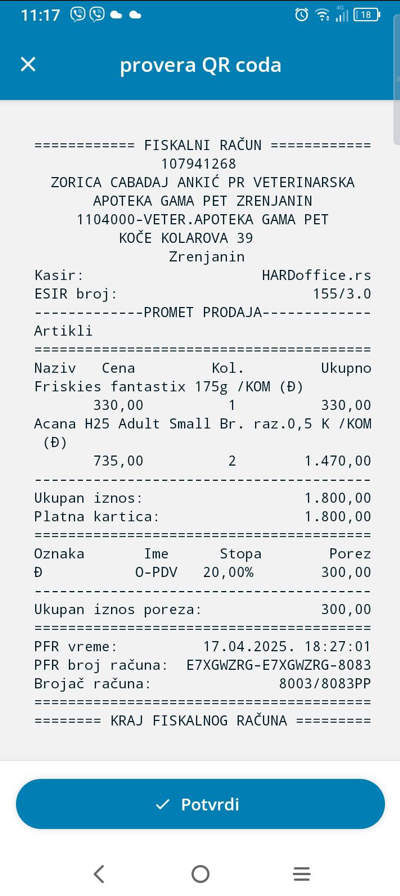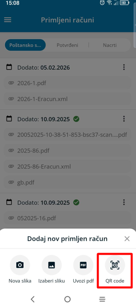 Postupak uvoza podataka očitavanjem QR coda sa primljenog fiskalnog računa