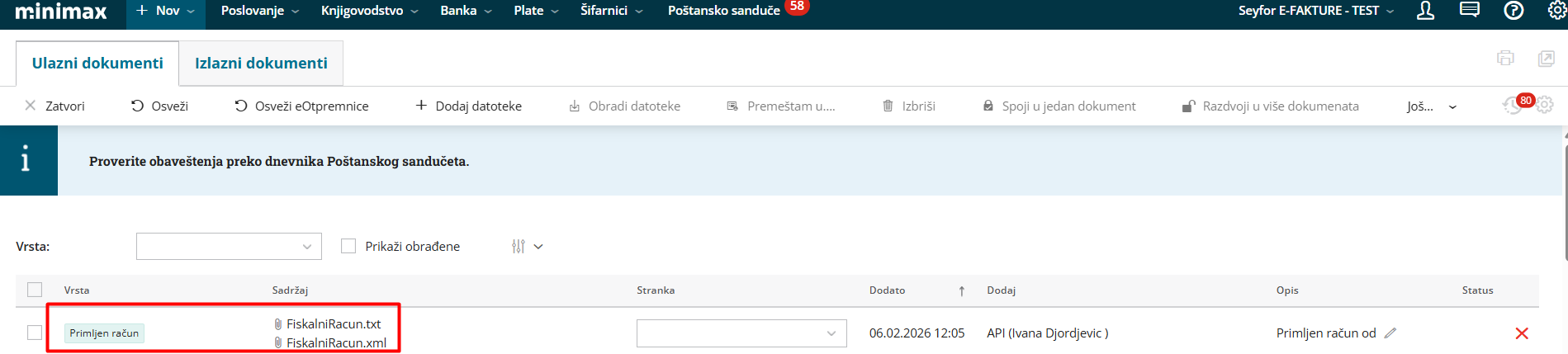 - U poštanskom sandučete dobijamo txt i xml format fisklanog računa. Kako u Mobilnoj aplikaciji tako i u web aplikaciji.
