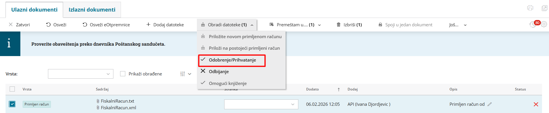 - Ovaj fiskalni račun da bi se dalje obradio tj. knjižio u programu, potrebno je odobriti što takođe možete iz mobilne aplikacije, detaljnije na link-u ili direktno iz web aplikacije Minimaxa.